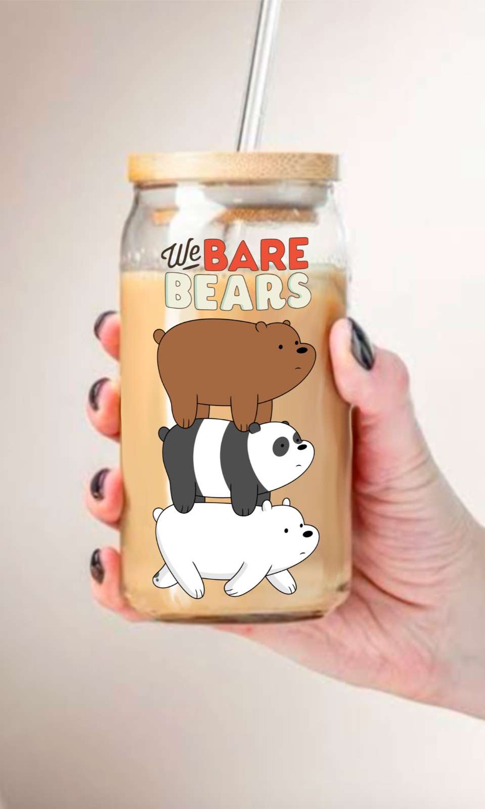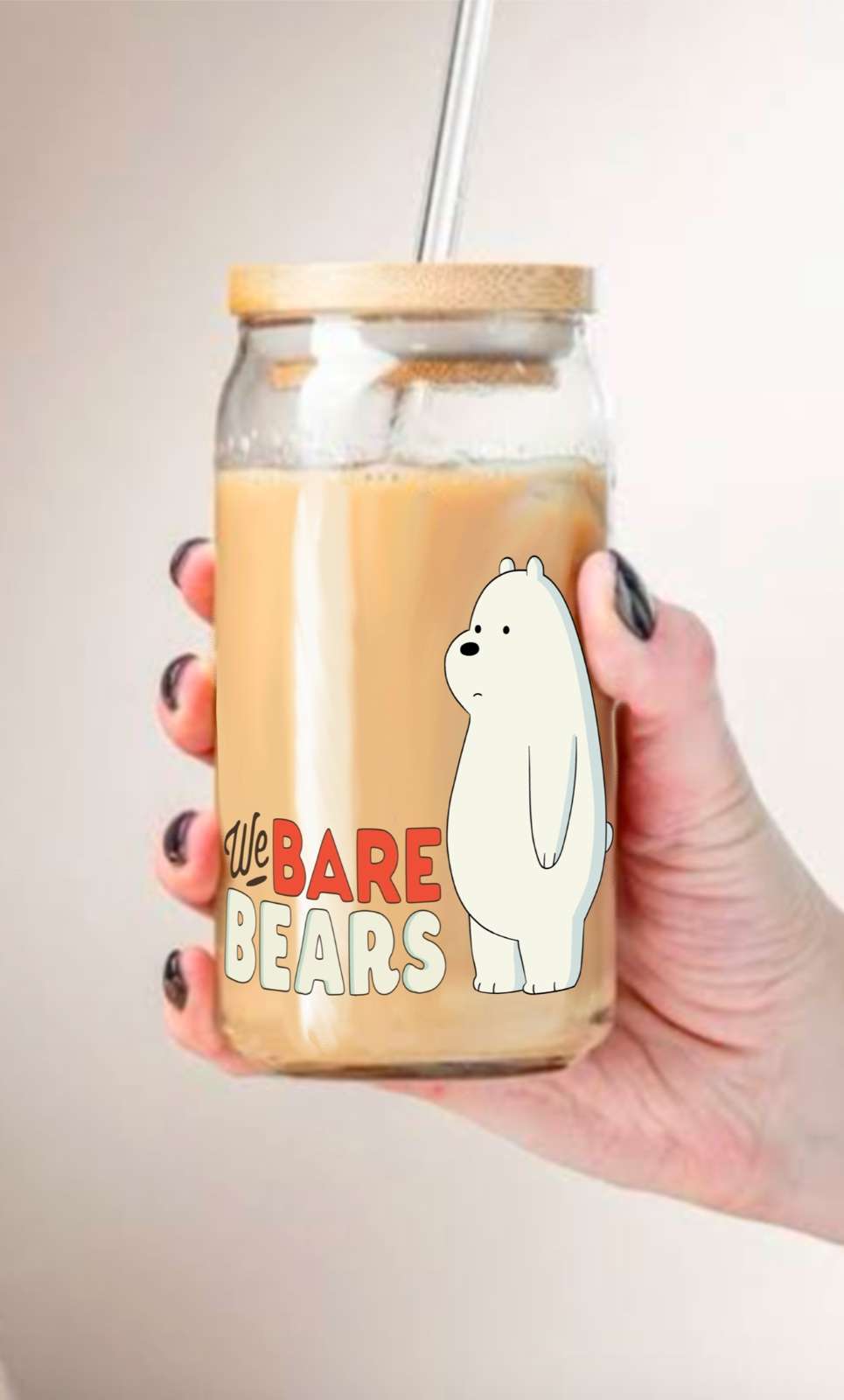 - Charming We Bare Bears Artwork: Elevate your drinkware with an adorable glass tumbler featuring the lovable We Bare Bears characters.